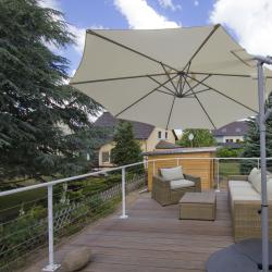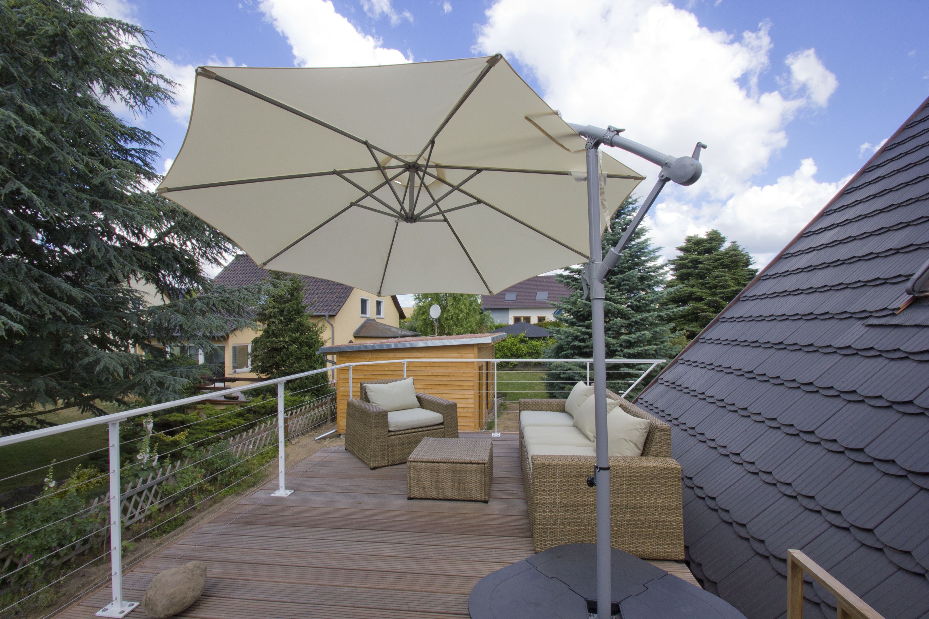 1 großer Balkon mit weitem Ausblick