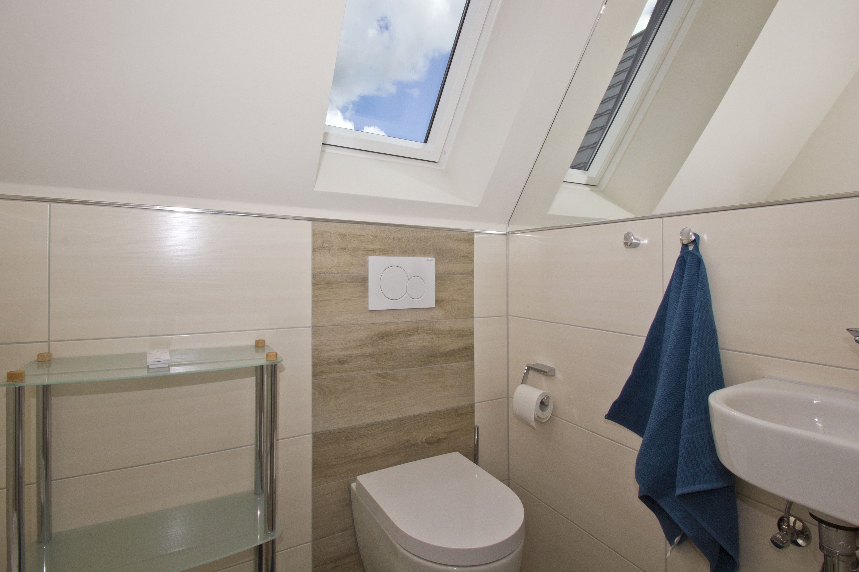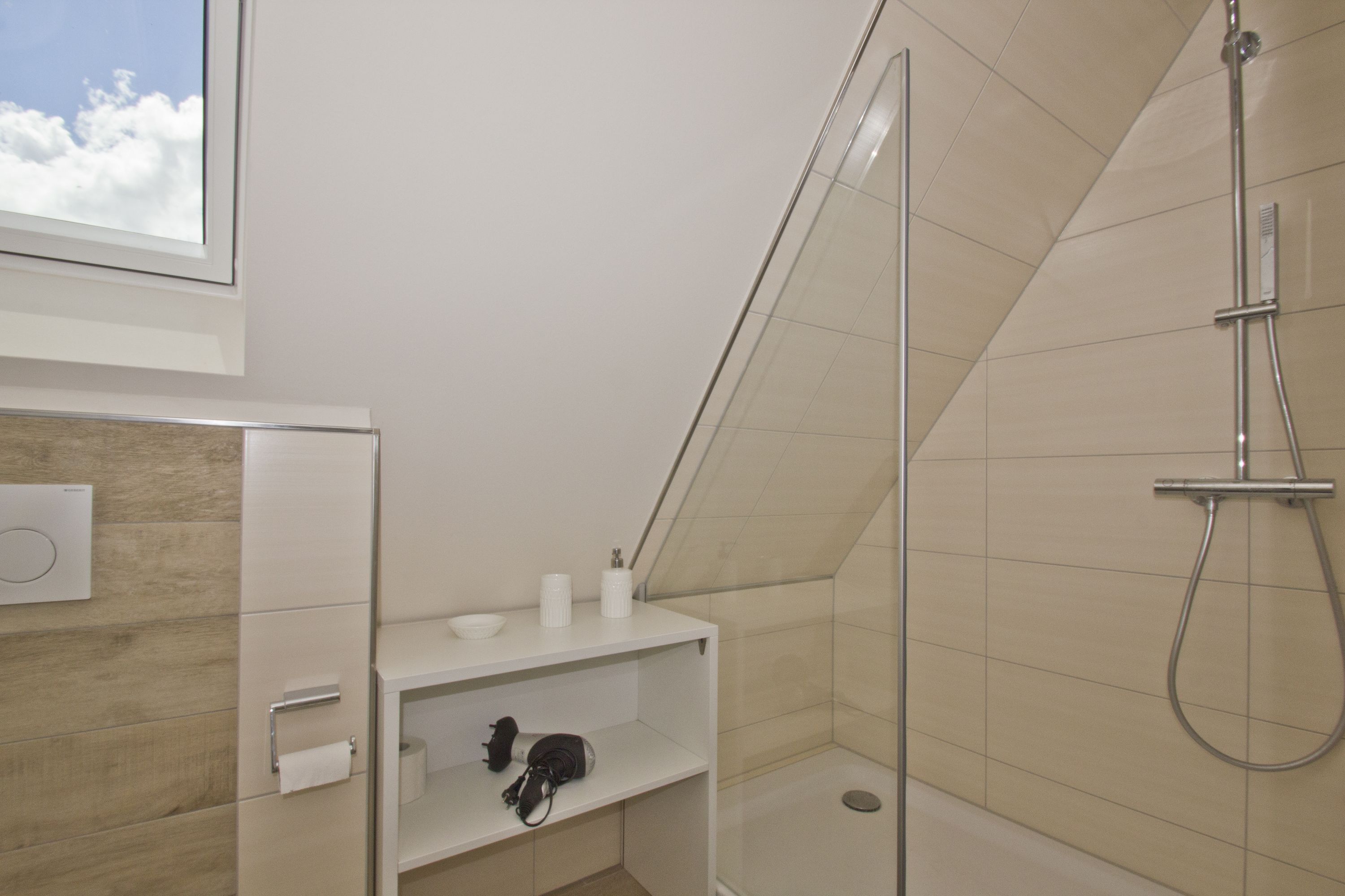 1 Bad mit Dusche, Waschgelegenheit und WC