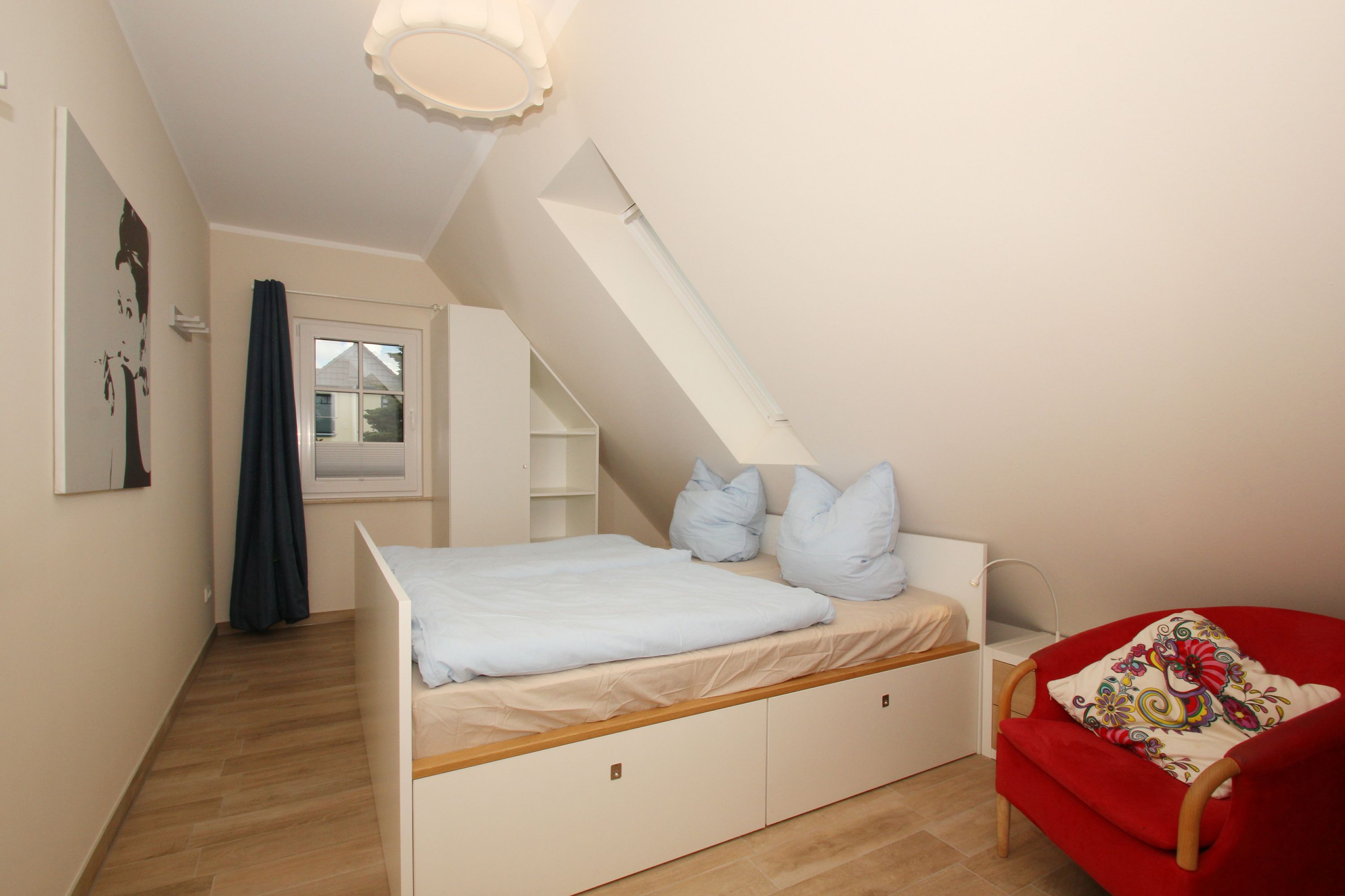 Schlafzimmer 1 mit einem Doppelbett und großem Schrank