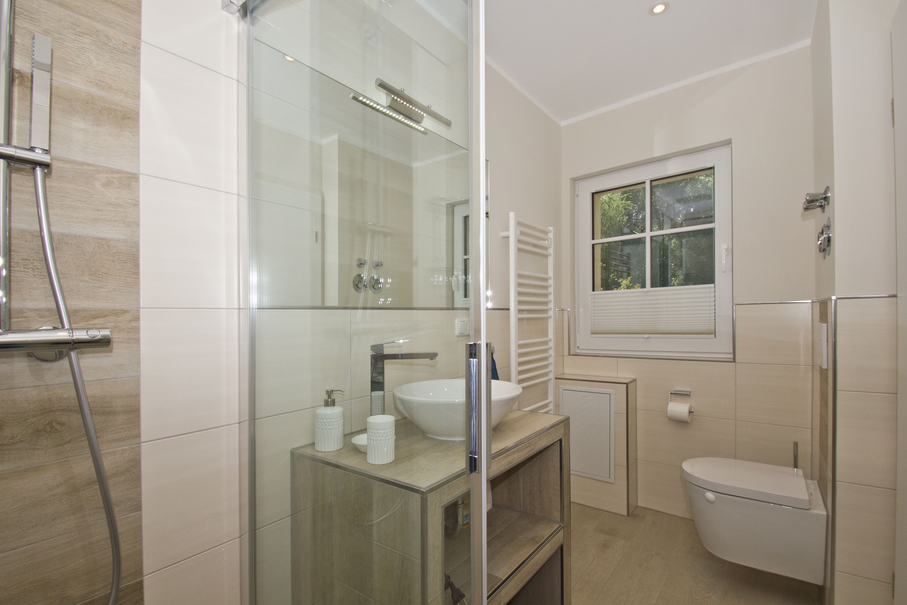 1 Bad mit Dusche, Waschgelegenheit und WC