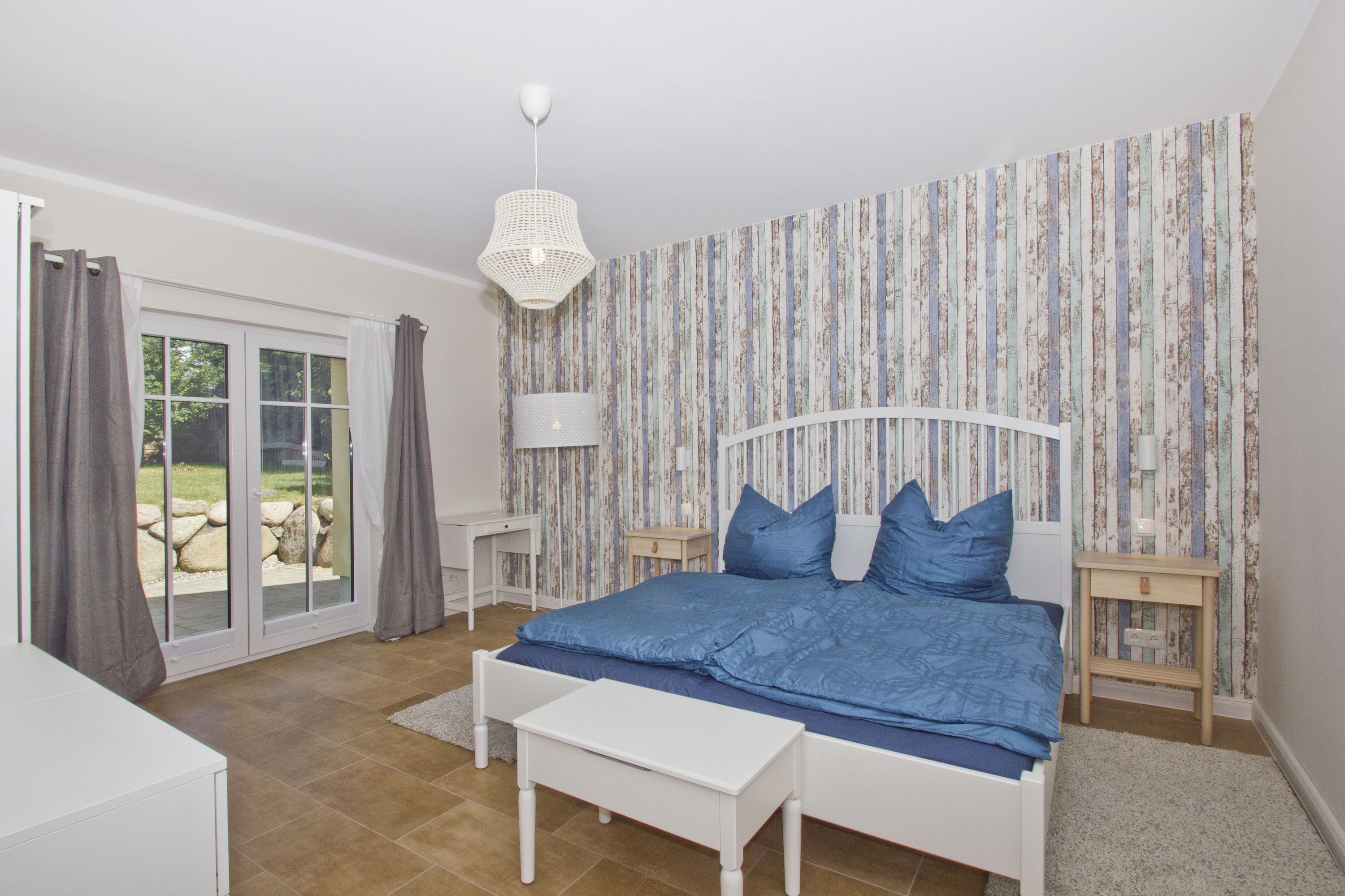 1 Schlafzimmer mit Doppelbett und großem Schrank