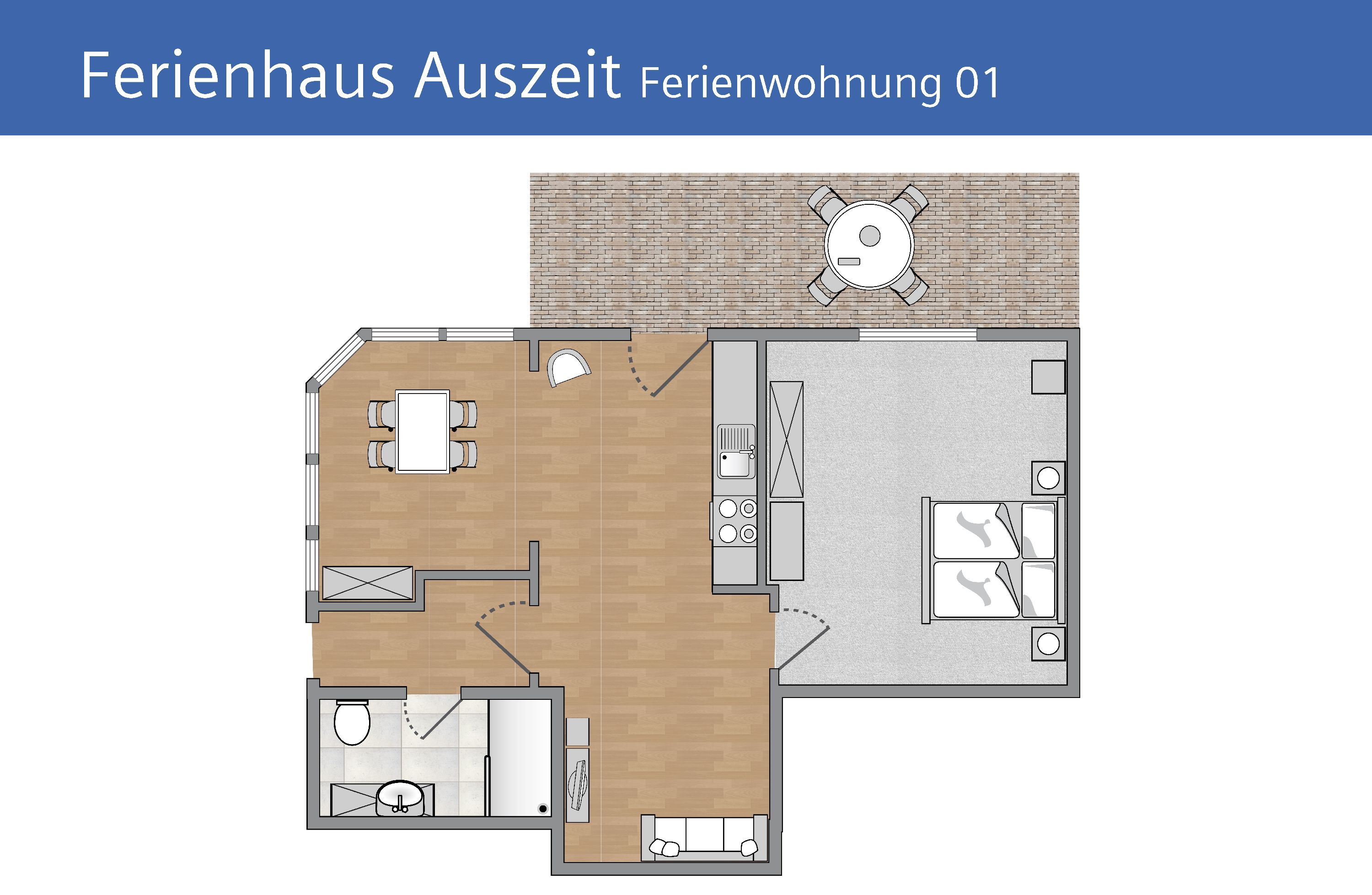 60m², 2-Raum, 3 Personen, Terrasse, Garten, kH